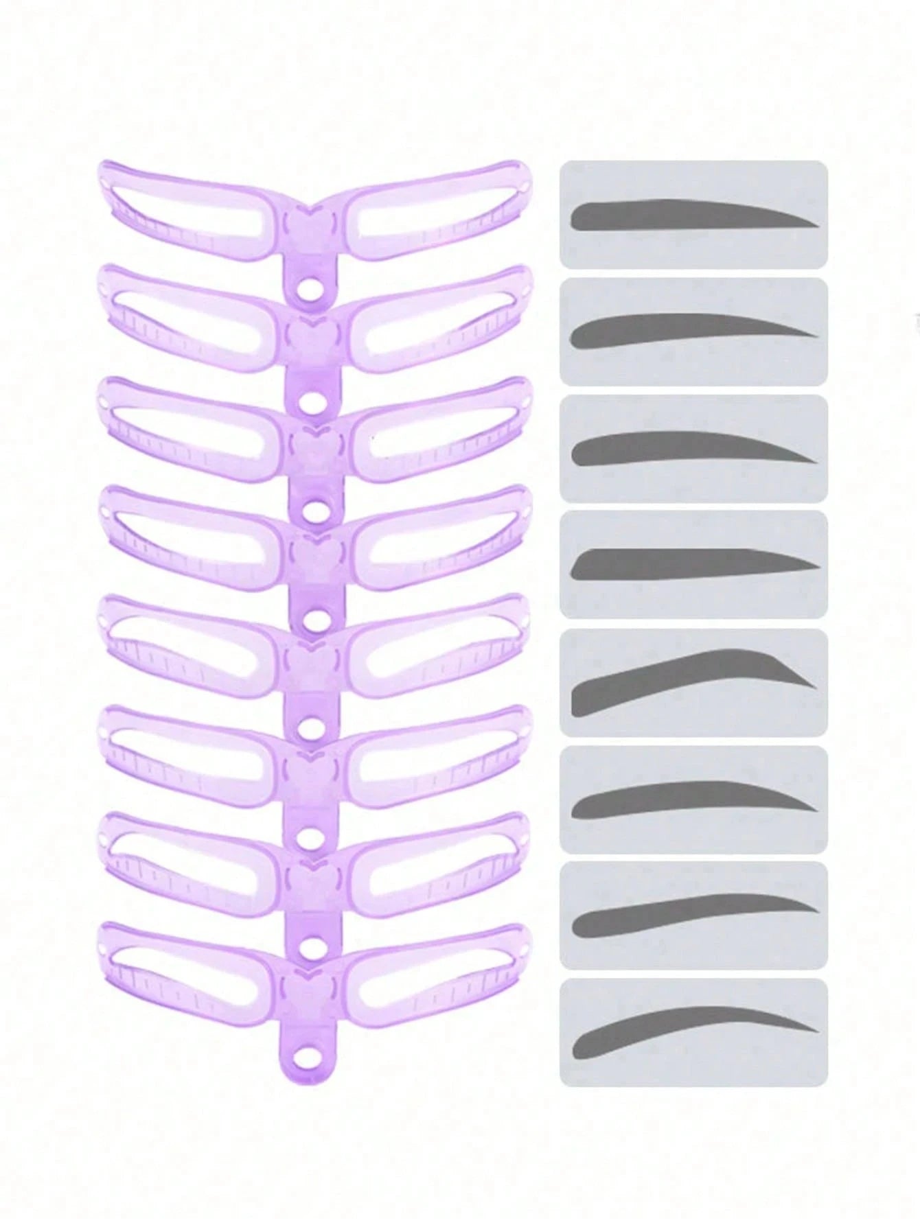 | Standard stencil cards | Plastic (wipe-clean) | Hold over brow, fill, brush | 8 styles, reusable, beginner-friendly |