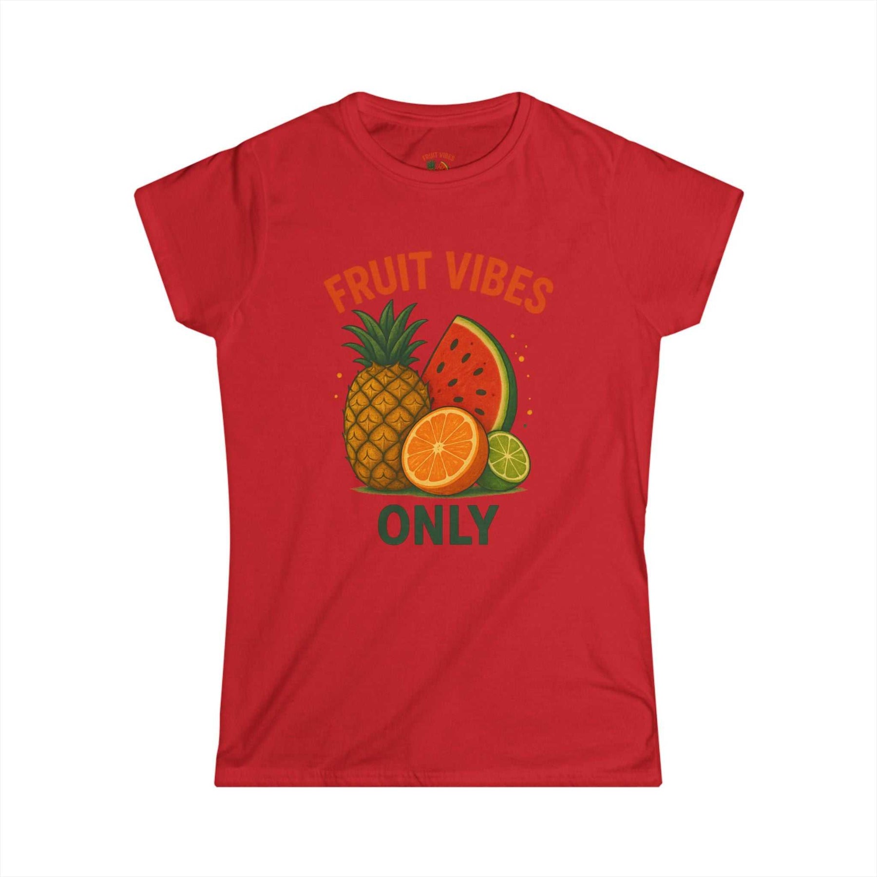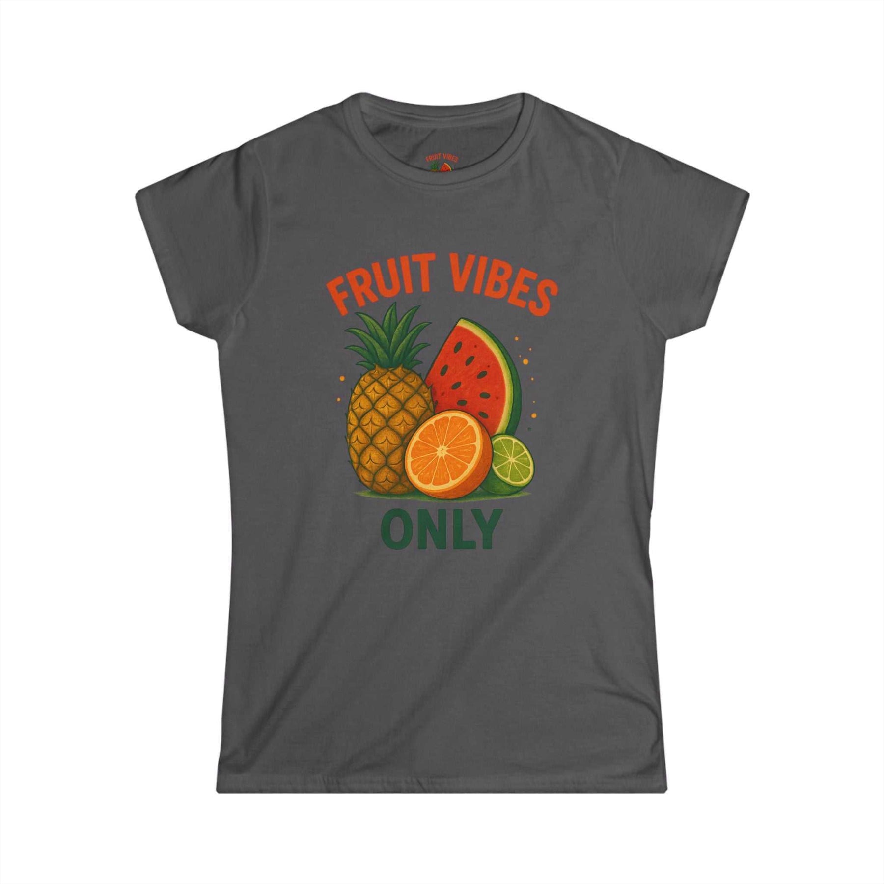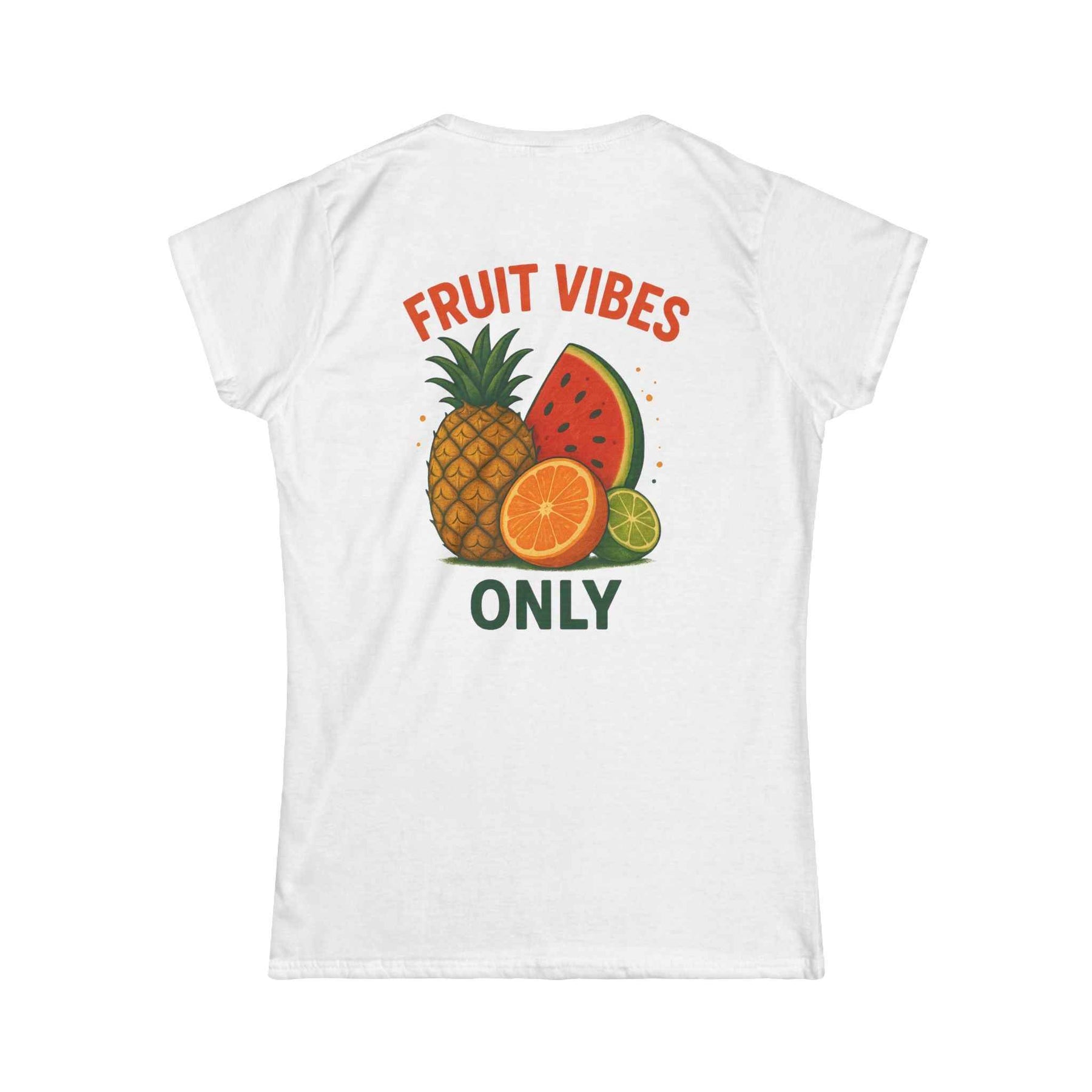 Fruit Vibes Damen Softstyle T-Shirt, Sommershirt, Tropische Mode, Lässiges Outfit, Geschenk für Obstliebhaber, Urlaubs-Essential