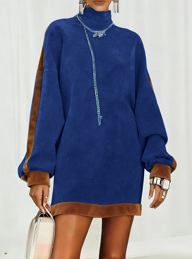 High-Neck Velvet Sweatshirt Dress – Oversized Chic Fit