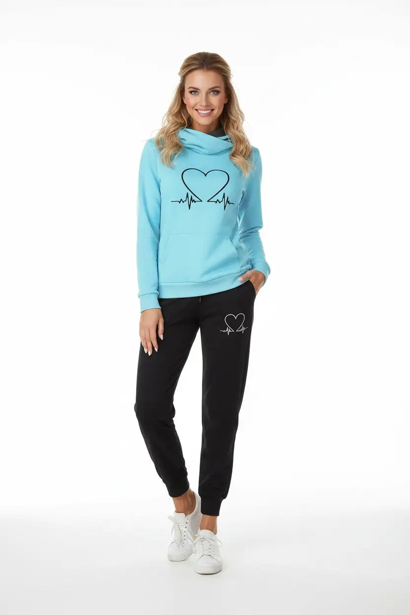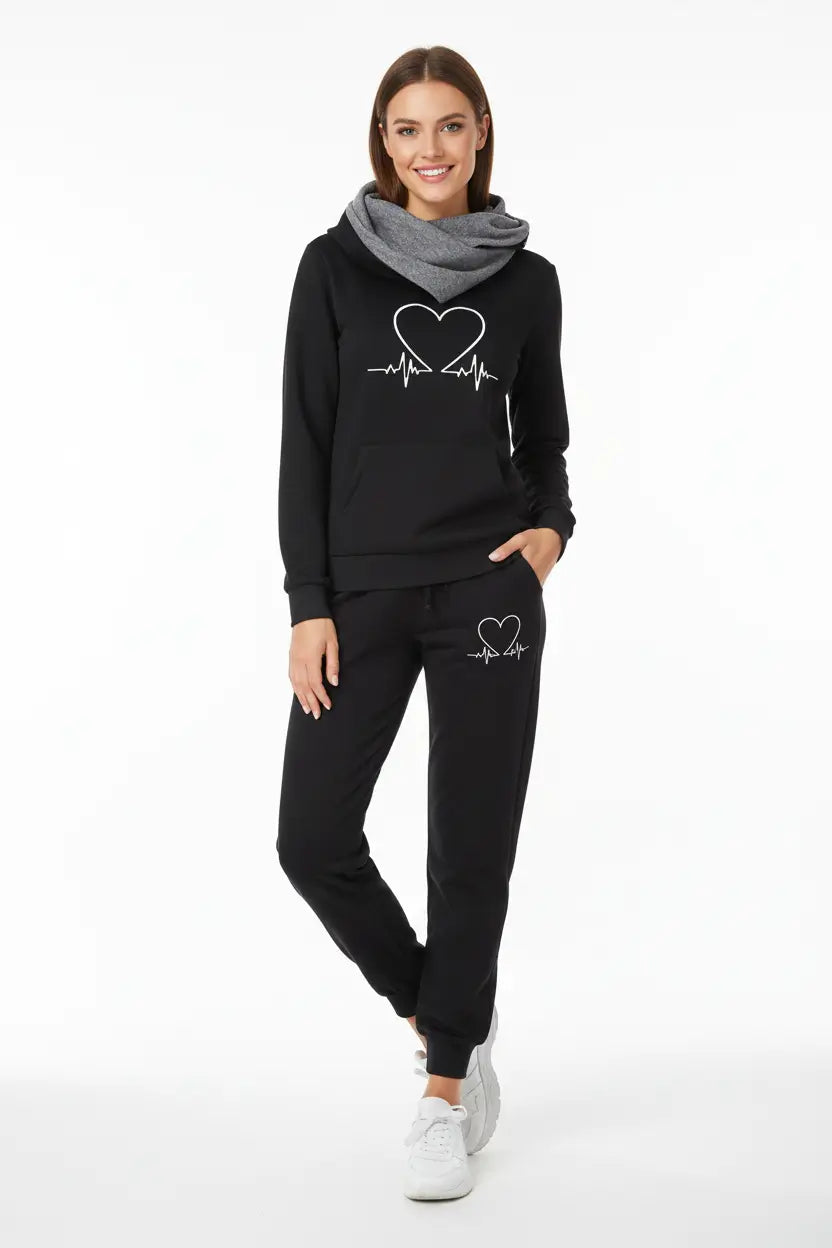 Love Heart Printed Women's Sports Suit Hooded Top & Pants