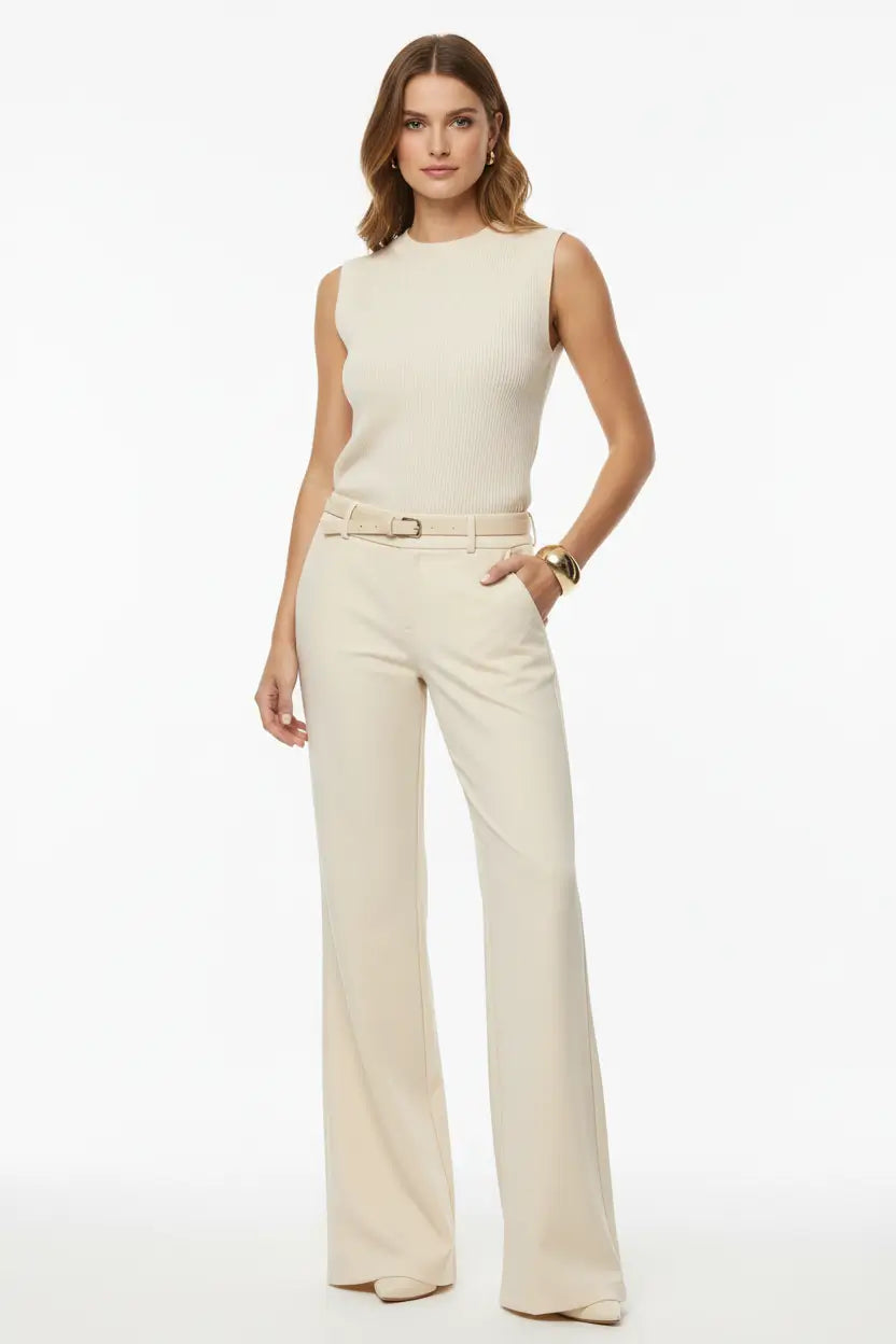 The cut is designed to create a slender, balanced line. Slimming pants that gently smooth the silhouette pair with height-enhancing trousers that elongate through the high waist and full length. The result feels natural rather than constructed, giving you that taller, more composed presence without any obvious effort.