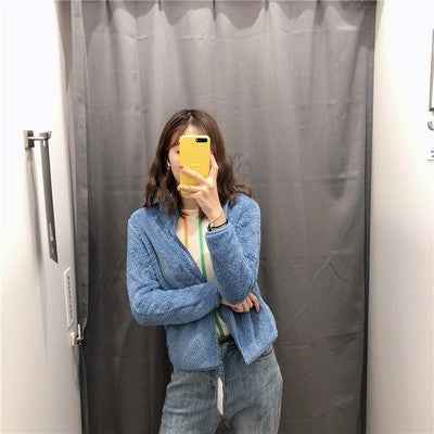 This fresh and sweet style jacket features a stand collar for added warmth and a modern silhouette, making it a versatile choice for casual outings, home lounging, or even office layering.