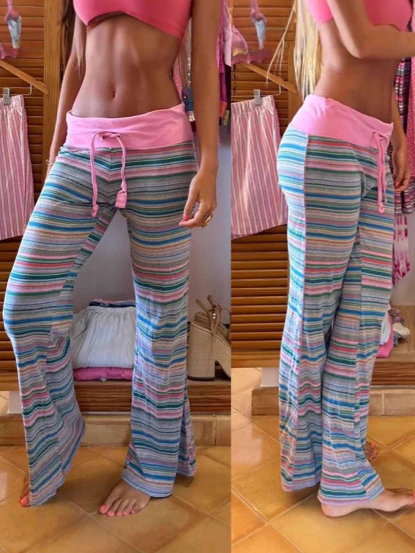 Some pants just make you reach for them every morning. These women's striped drawstring pants bring bold color into your everyday routine — effortless to style, generous in fit, and light enough to wear from morning errands to evening wind-downs.
