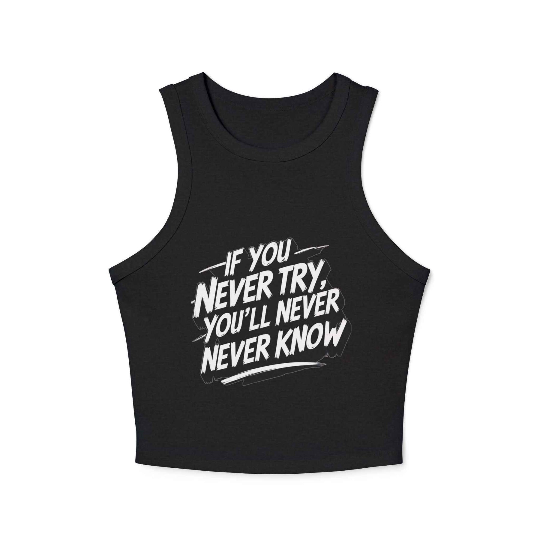 Elevate your workout wardrobe with the Motivational Racer Tank Top for Women. Crafted with care and style, this high-neck racer tank blends minimalist aesthetics with maximum comfort. The micro rib fabric offers gentle stretch while accentuating your silhouette, making it perfect for high-energy sessions or casual streetwear vibes.