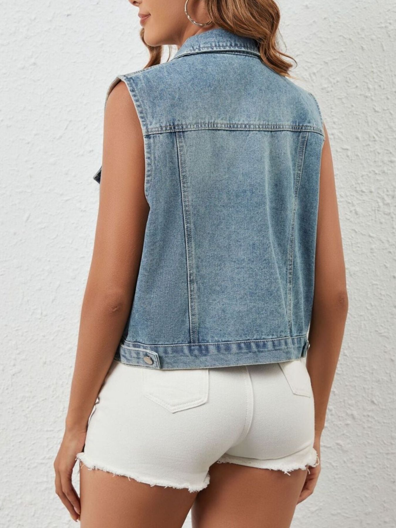 Rhinestone denim jacket women have never looked this sharp. This sleeveless design is built for the woman who walks into a room and doesn't need to say a word. The rhinestones do the talking - each one placed to catch light, draw eyes, and hold attention long after you've moved on.