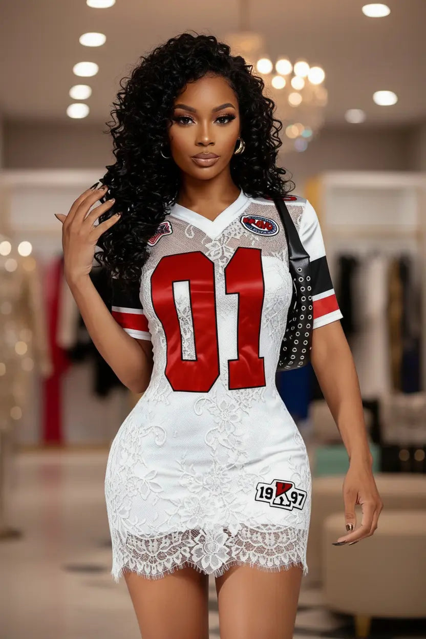 sexy lace dress geometric embroidery detail close-up feminine silhouette