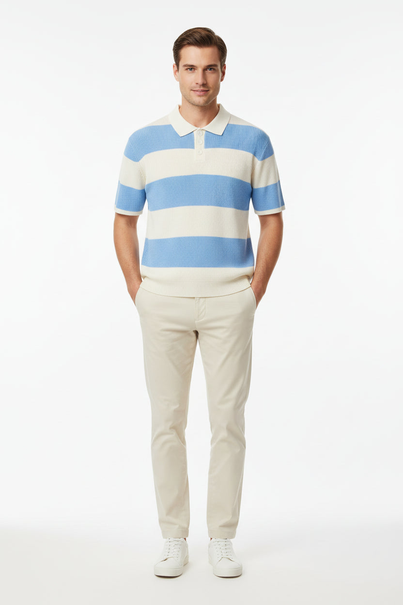 Many men struggle to find summer knitwear that looks structured rather than overly casual. This piece solves that problem with a refined collar and tailored fit that instantly looks more intentional.