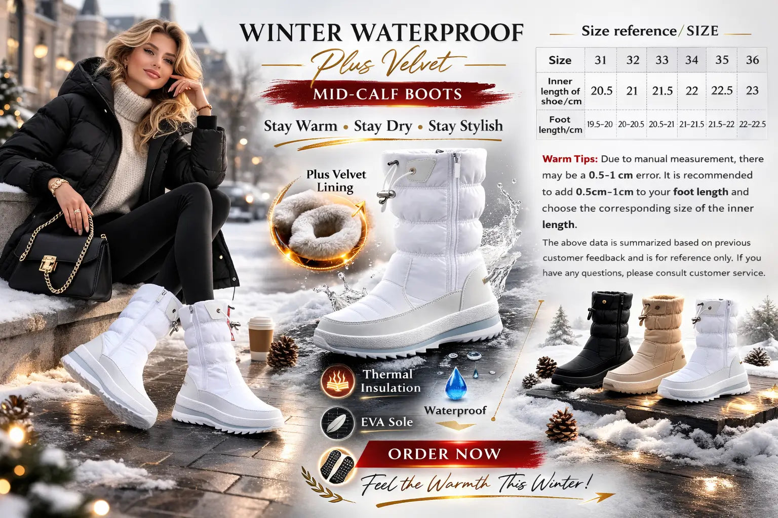 Winter waterproof boots women designed for cold city mornings and long outdoor days. Built for warmth, stability and everyday movement, this pair delivers practical performance without sacrificing a clean silhouette.