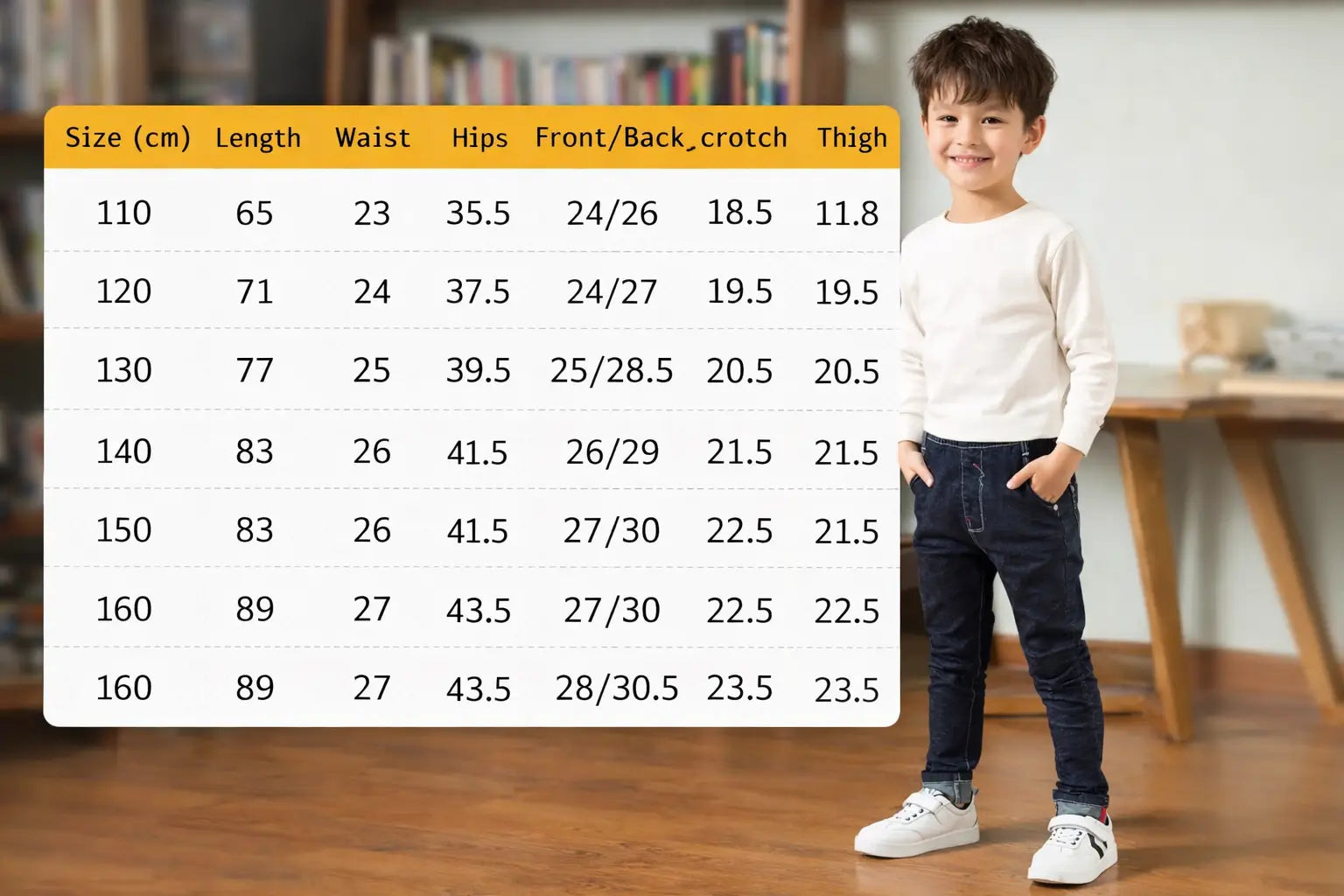 Boys fleece jeans front and back rise measurement table detail