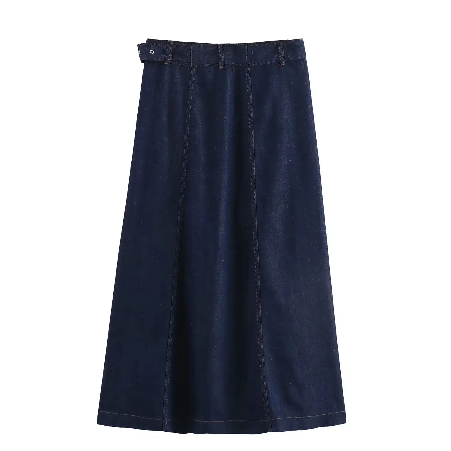 Women's High Waist Denim Skirt – French Minimalist Elegance