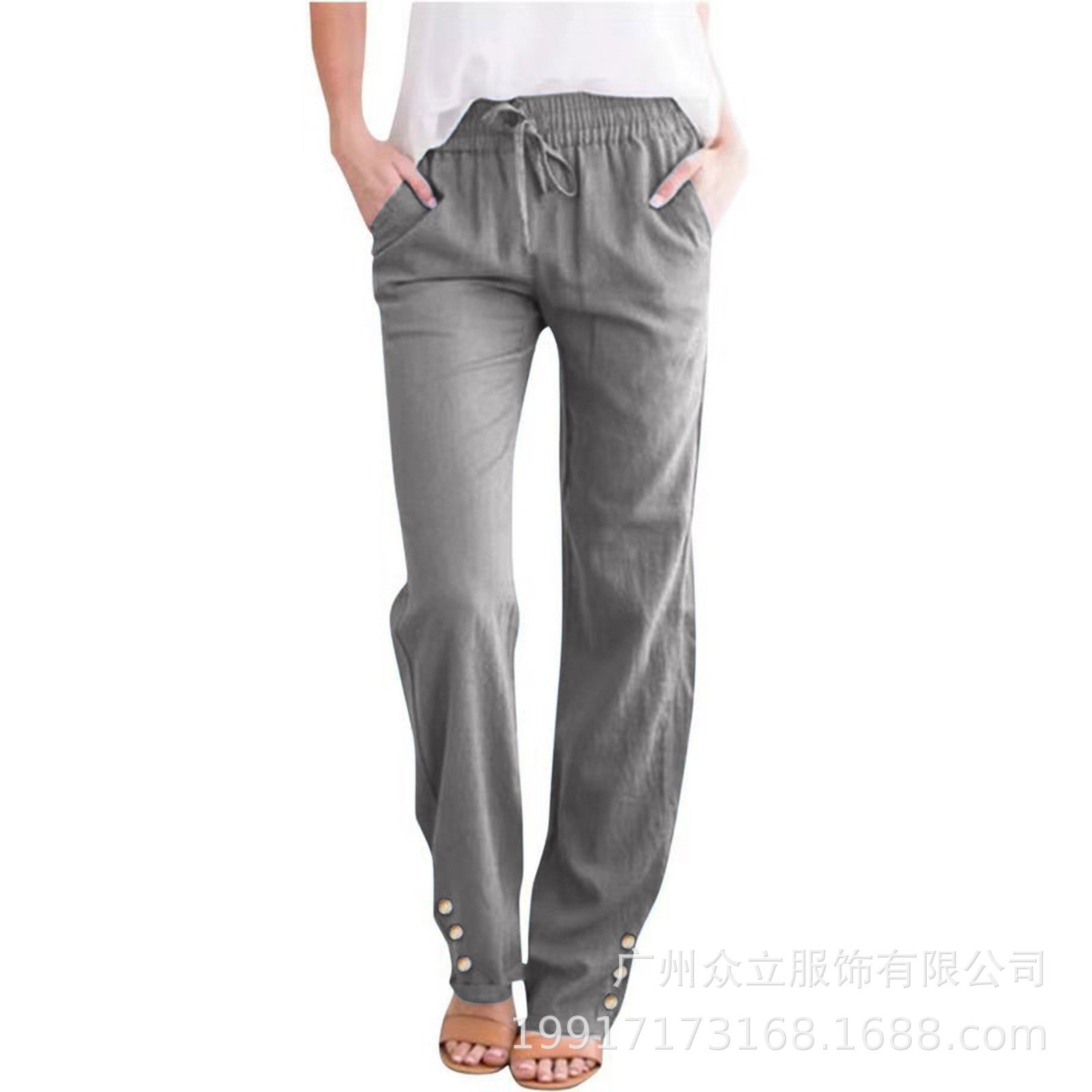 Cotton linen wide-leg trousers – breathable drawstring fit with pockets, S–3XL, 18 colors