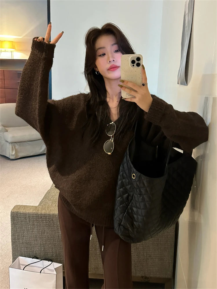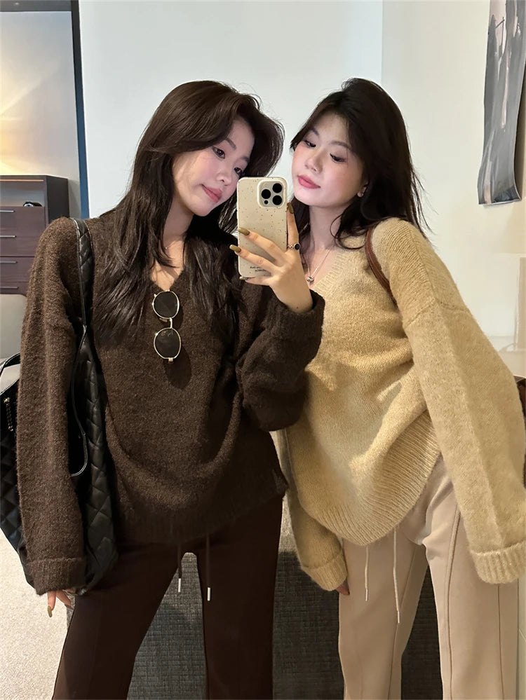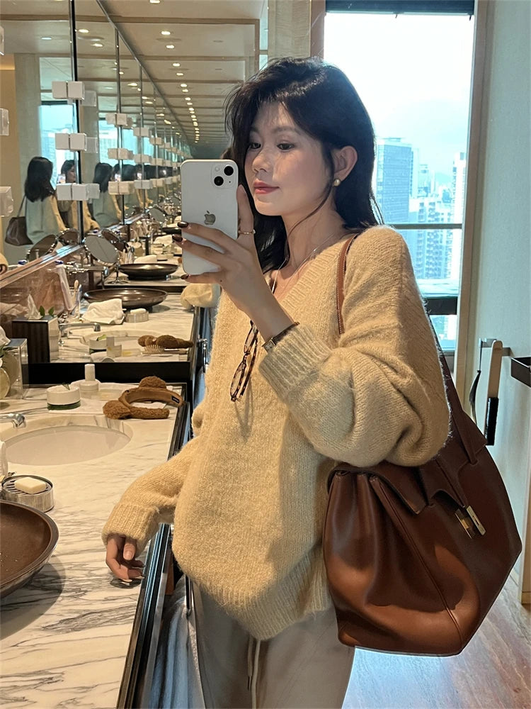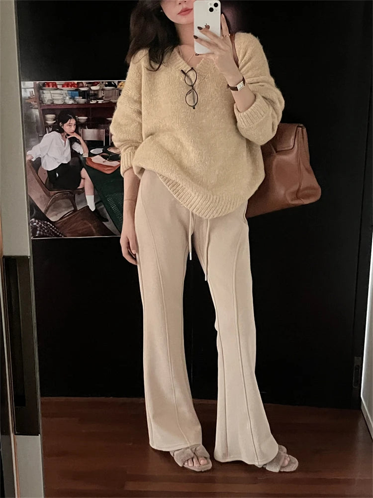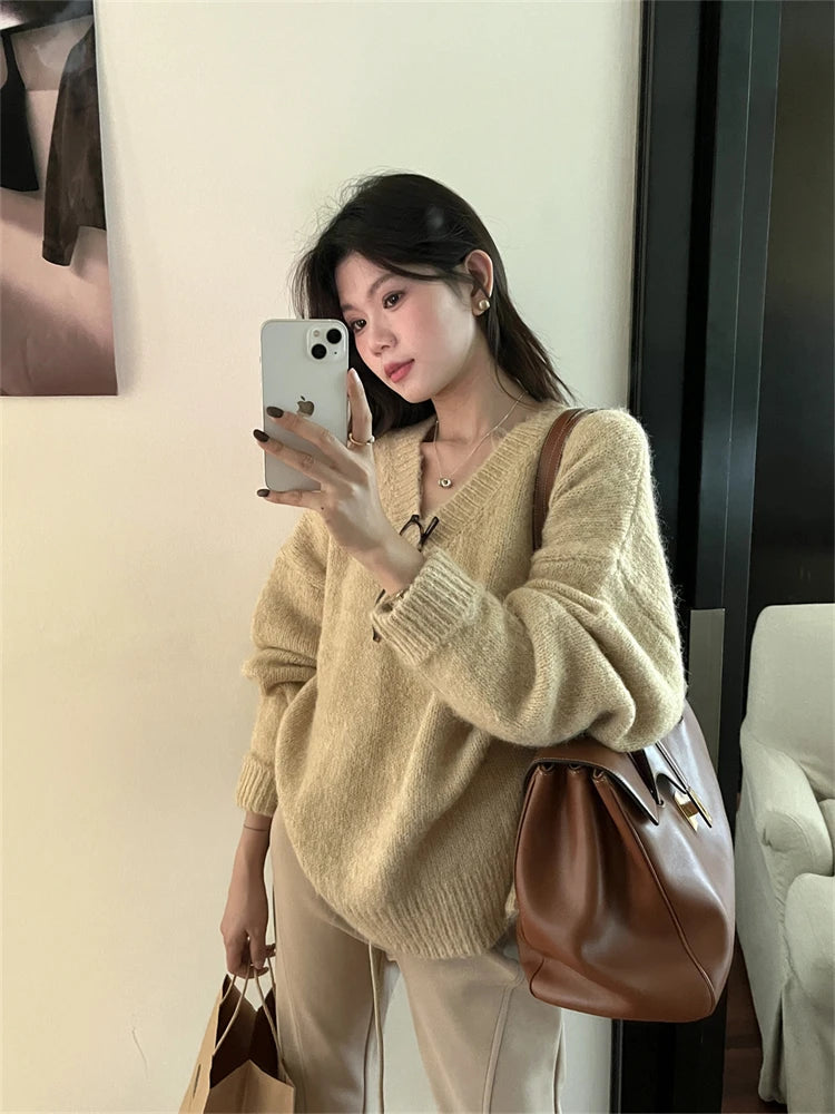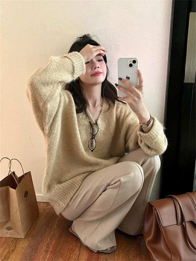 The V-neckline creates a universally flattering silhouette. Meanwhile, the solid color design eliminates decision fatigue – it pairs effortlessly with denim, tailored trousers, or layered under blazers. Furthermore, the soft texture feels gentle against skin while maintaining structure throughout the day. Whether you're working from home or heading to brunch, this pullover adapts to your lifestyle.